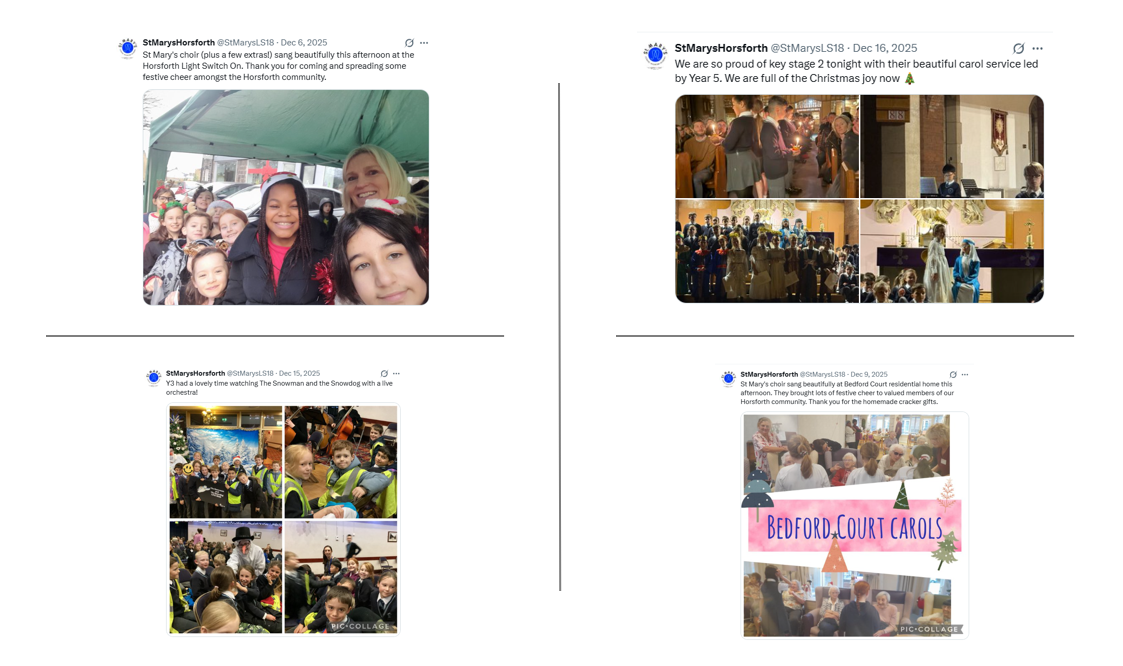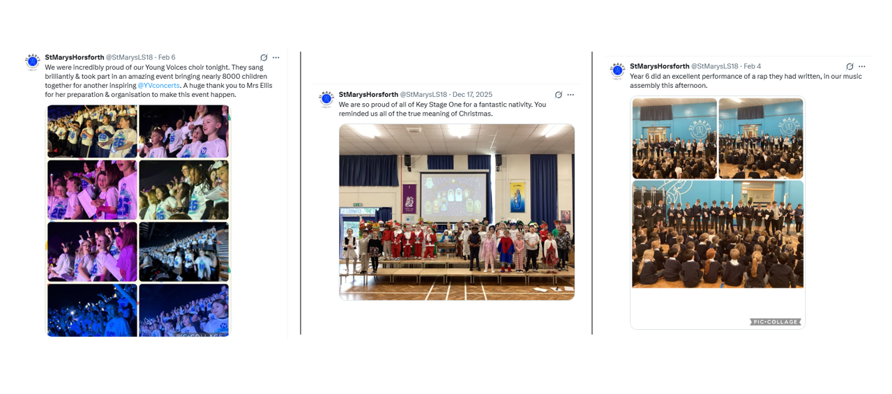 Our school choir proudly performs at community events, while our liturgical choir contributes to school masses and collective worship. Additionally, every child participates in cherished traditions, including the Reception and Key Stage 1 Nativity, the KS2 carol service, the Easter production, and the Year 6 production.